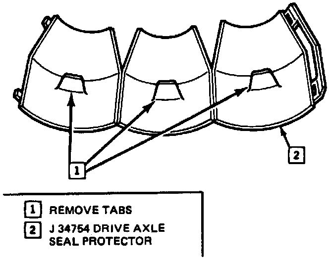^ Drive axle joint seal protectors should be used any time service is performed on or near the drive axles. Failure to observe this can result in interior joint or seal damage and possible joint failure. The J-34754 Seal Protector must be modified as shown.
