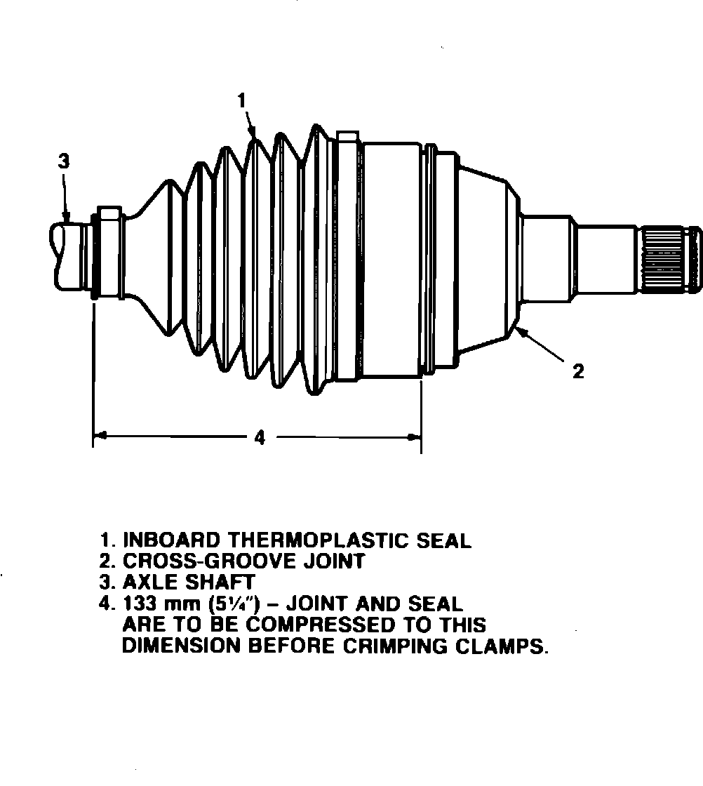 Certain 1988 models with performance oriented combinations of engine, transaxle and Suspension options use a new cross-groove design constant-velocity (CV) joint at the inboard (transaxle) end of the drive axle assembly. The joint can be identified by the cylindrical shape of its outer housing. Refer to the illustration for the proper seal collapse dimension when making repairs to the seal, clamps, or housing assembly.