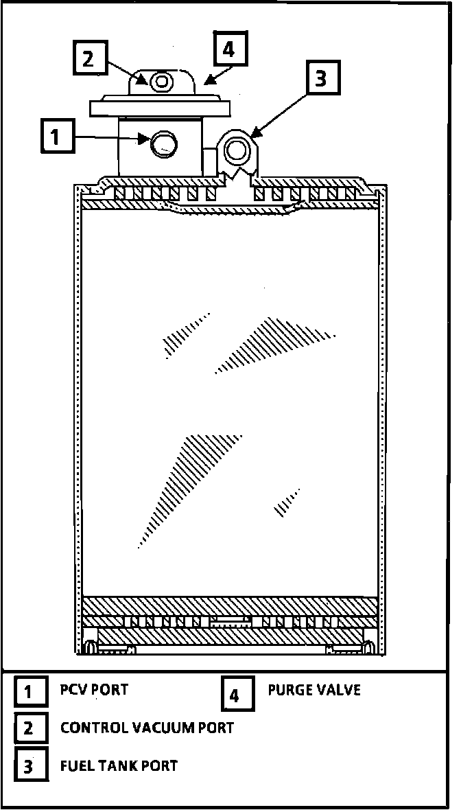 The evaporative emission control system used on this vehicle is the charcoal canister storage method. This method transfers fuel vapor from the fuel tank to an activated carbon storage canister to retain the vapors when the vehicle is not operating. When the engine is running the fuel vapor is purged from the carbon element by intake air flow and consumed in the normal combustion process.