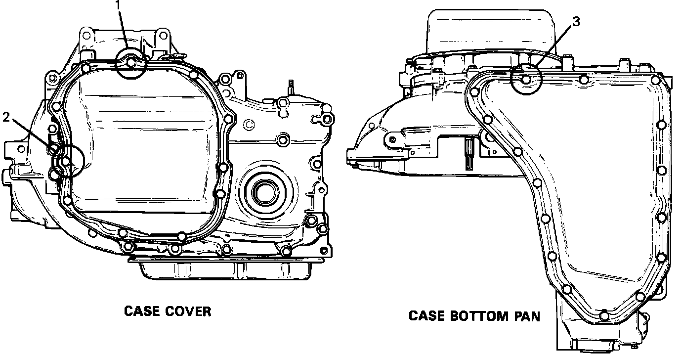 Whenever the side cover or bottom pan has been removed on any THM 125/125C it is necessary to use LOCTITE 242 (or equivalent) to reduce the potential for leaks on the bolts indicated in the illustration.