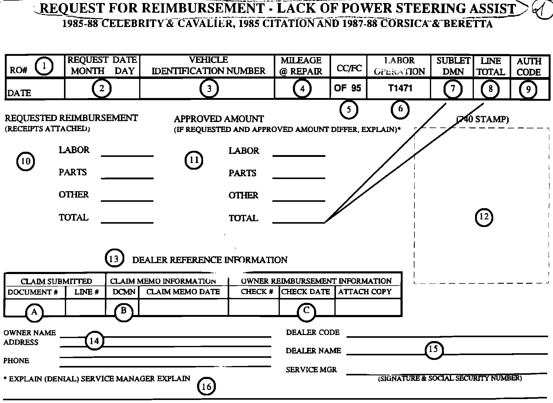 REQUEST FOR REIMBURSEMENT - LACK OF POWER STEERING ASSIST: