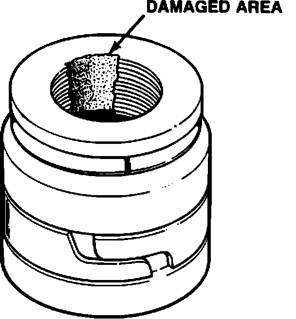 An inspection of the intake valve stem seal of any cylinder will reveal if the seal is in fact damaged. The damaged seal(s) can be identified by a cutout section on the top portion of the seal, see Illustration. Valve spring removal is required to properly inspect the seal. If a seal is identified as damaged, all intake valve stem seals must be replaced with P/N 10042875. Refer to Section 6A1 of the Service Manual for details on seal servicing.