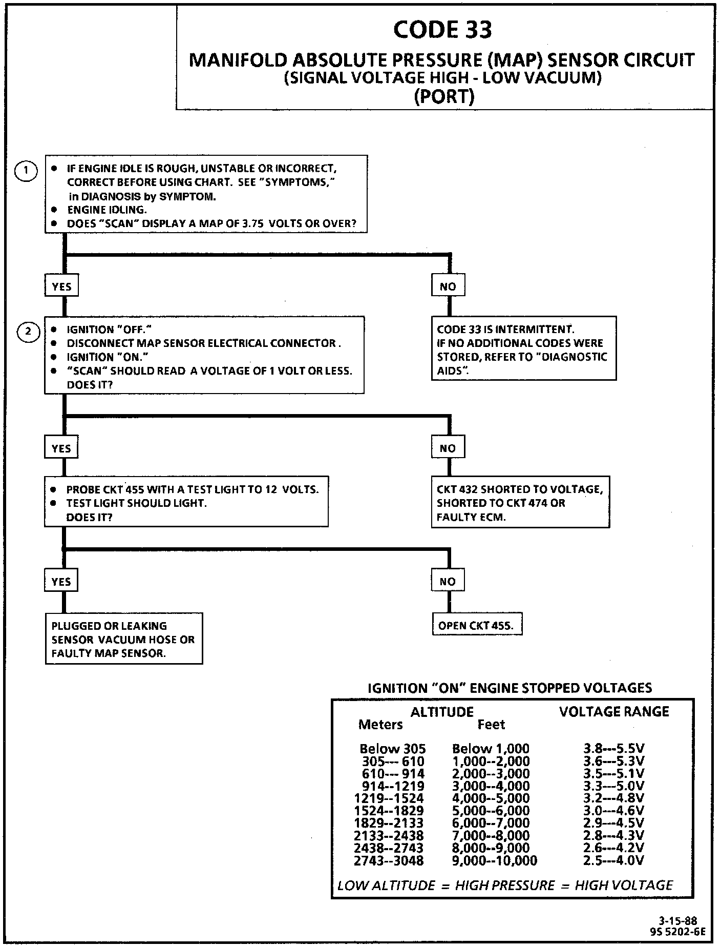 If idle is rough or unstable, refer to Diagnosis by Symptom for items which can cause an unstable idle. An open in CKT 455 or the connection will result in a Code33.