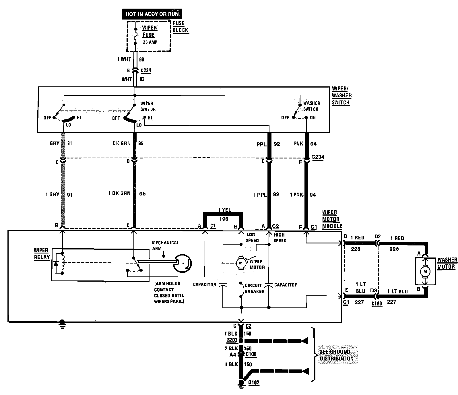 Wiper/Washer System Wiring Circuit (Less Pulse):