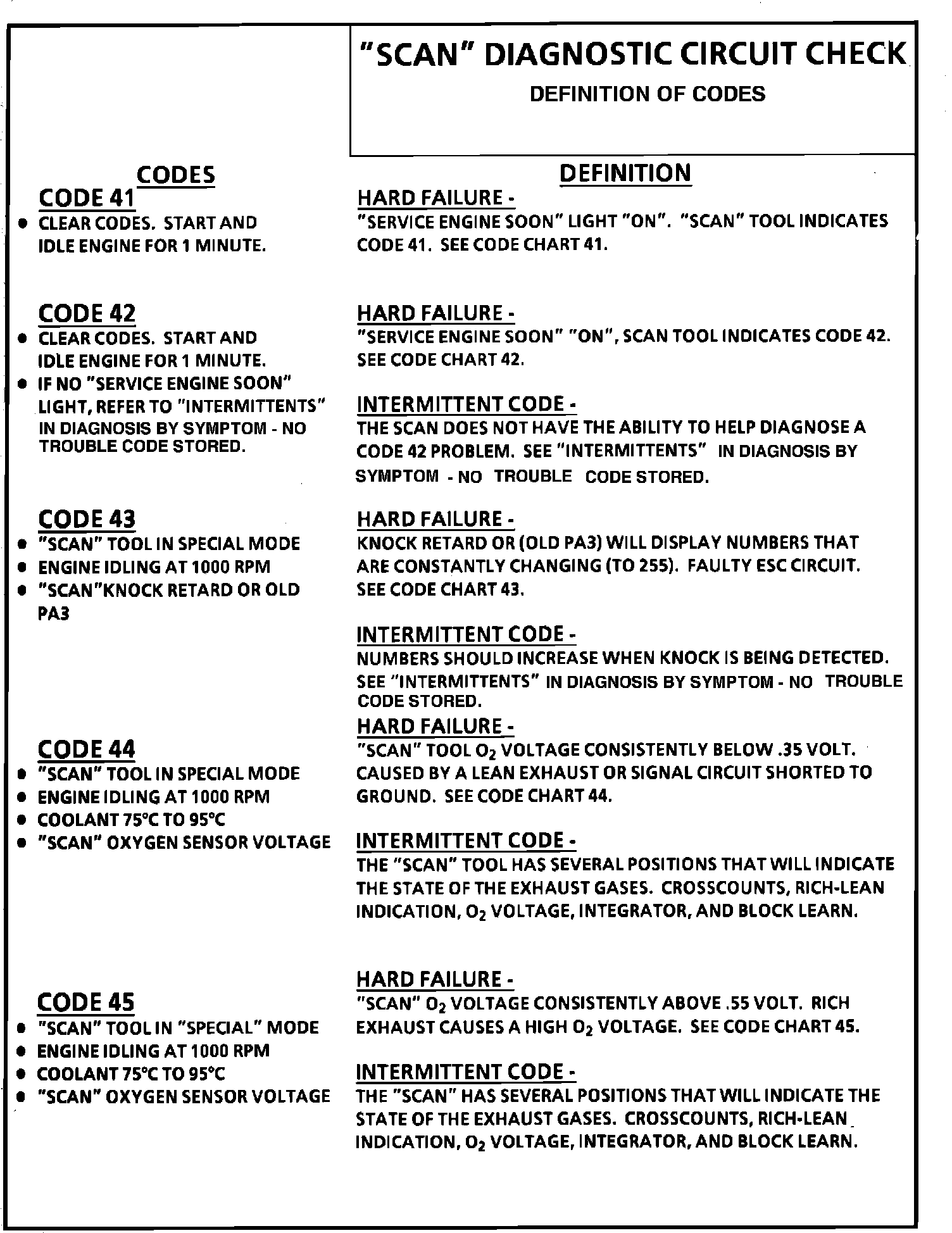 Definition of Trouble Codes: