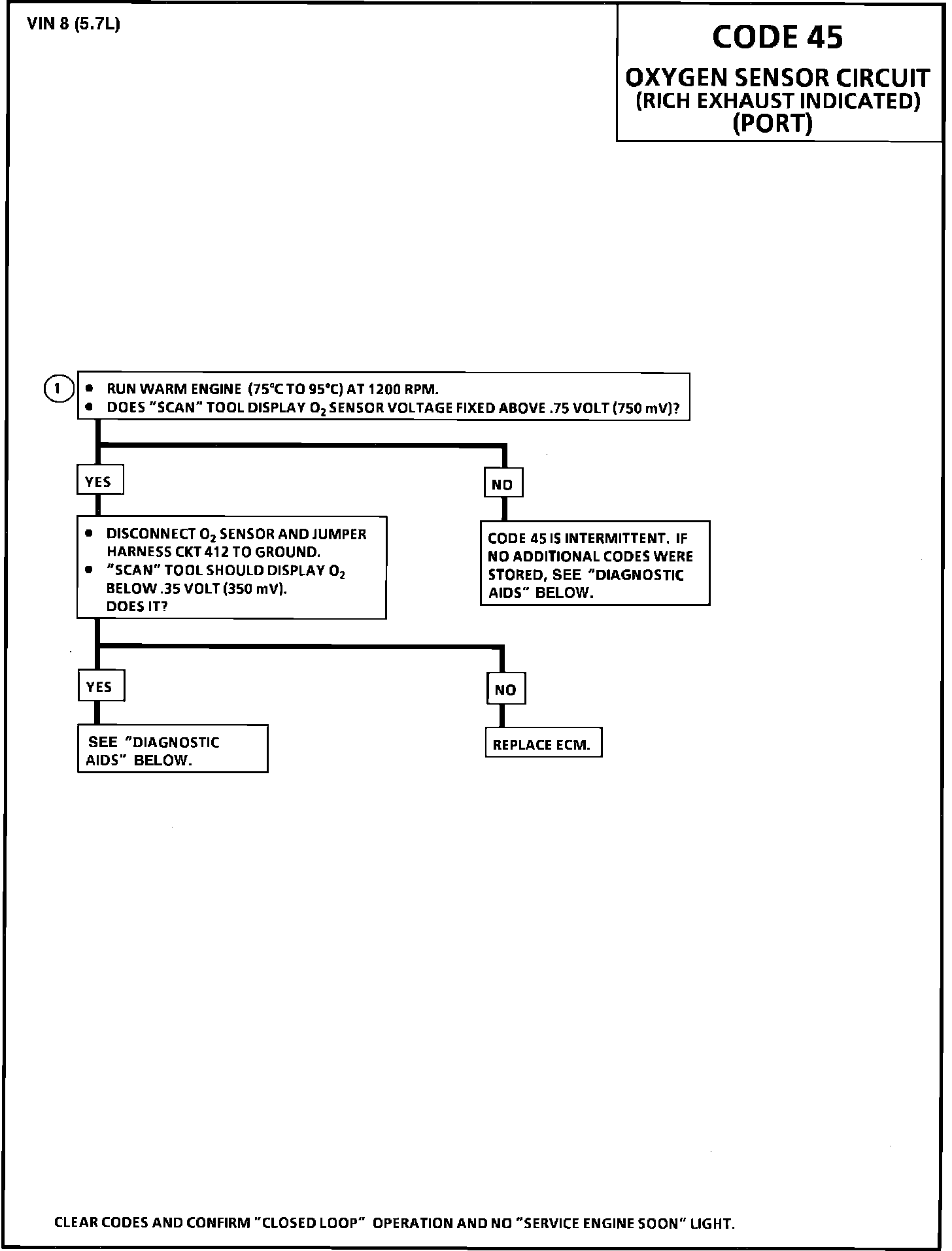 Chart - Code 45 Oxygen Sensor Circuit, Rich Exhaust Indication: