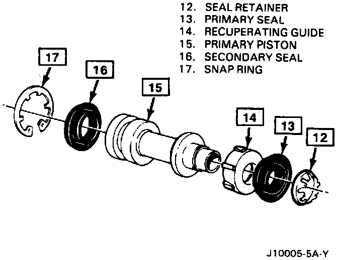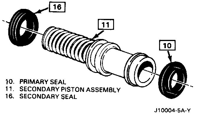 8. Install primary piston with assembled parts (12 thru 16) in cylinder (1) bore.