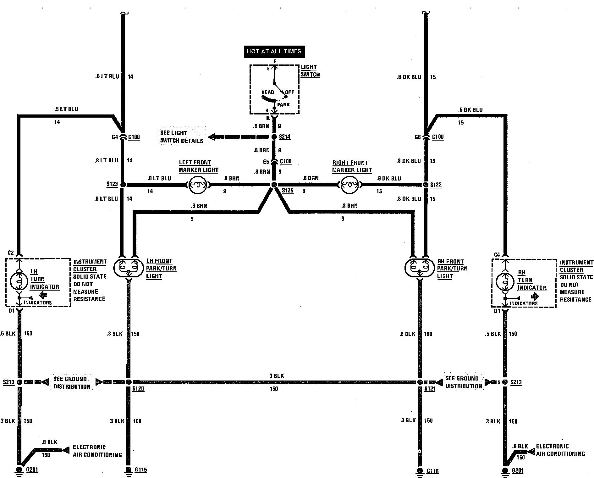 Front Marker, Hazard, Park, Stop & Turn Lights Wiring Circuit: