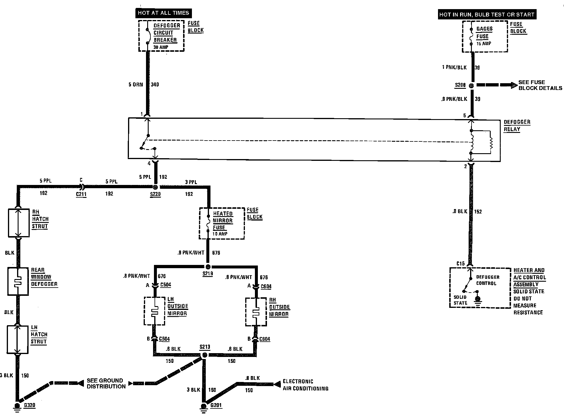 Heated Mirrors & Rear Defogger Wiring Circuit (Electronic Air Conditioning):
