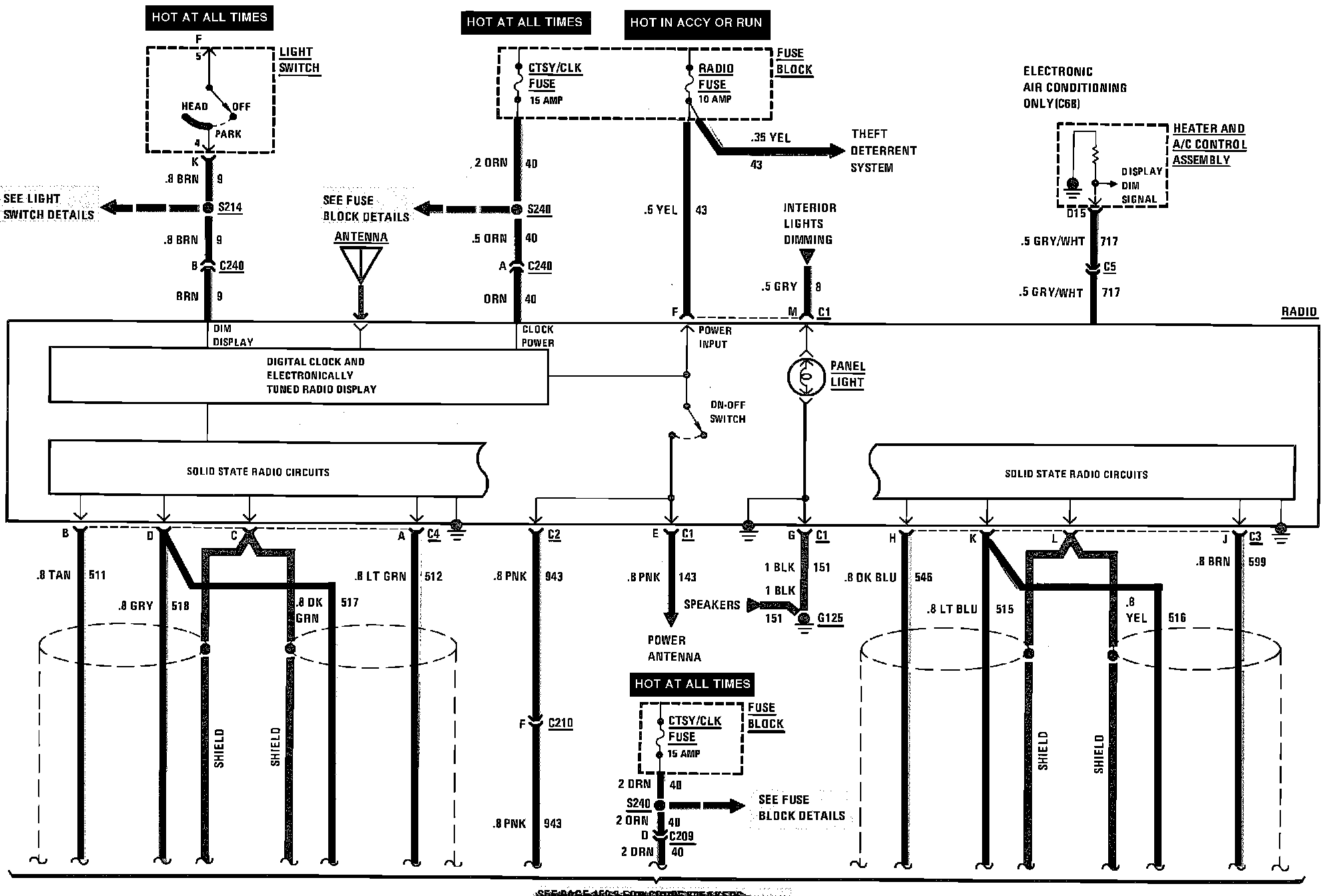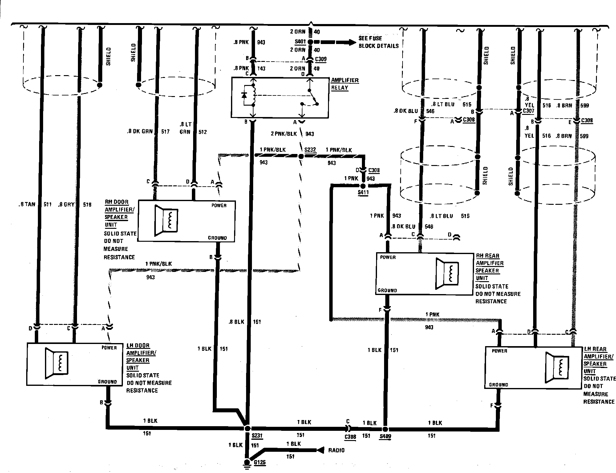 Radio & Speaker Wiring Circuit. W/Delco-Bose System: