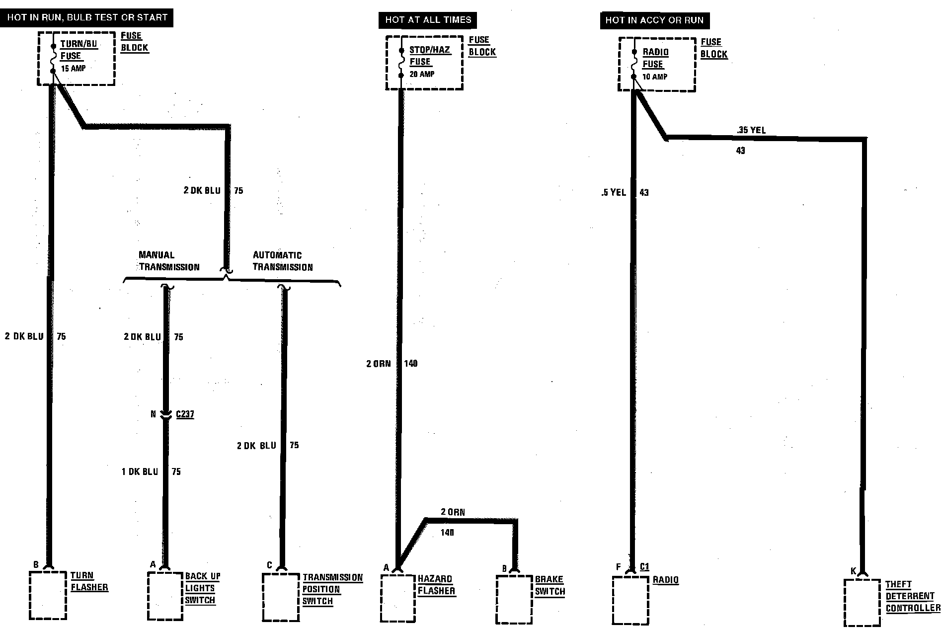 Fuse Block Details (Back-Up Fuse, Hazard Fuse, Radio Fuse, Stop Fuse & Turn Fuse):