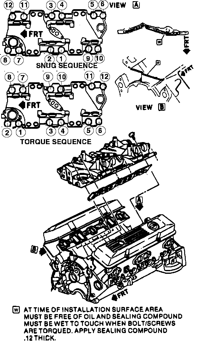 18. Bend gasket tabs flush with rear face with cylinder head, then apply a 3/16 inch bead of RTV sealer to front and rear ridges of cylinder block.