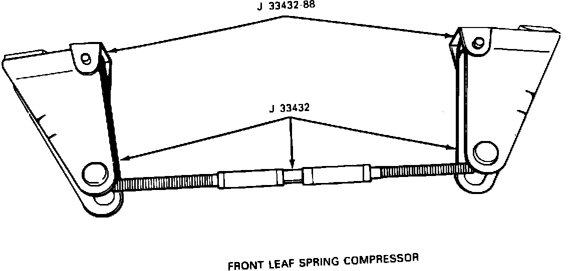 A new front leaf spring compressor adapter, J33432-88, has been developed and will be available approximately 9/15/88 from Kent-Moore, for use on all 1988 Corvettes. This adapter can be used with existing front leaf spring compressor, J33432. The new adapter was released due to the wider front transverse spring on the 1988 Corvette.