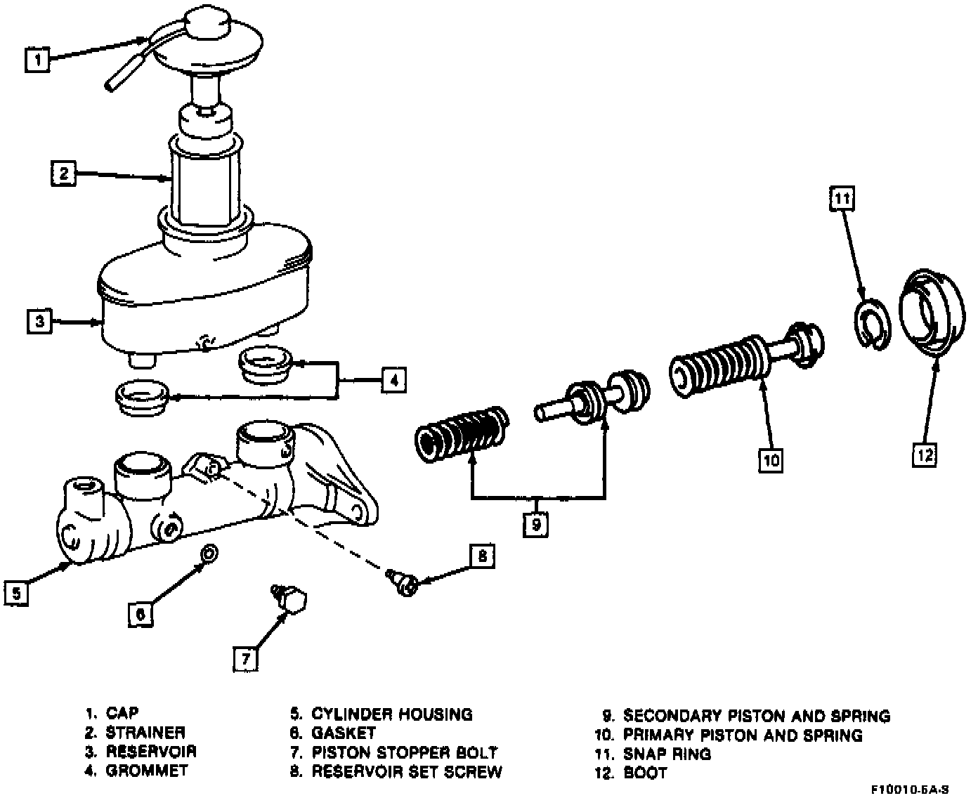 Figure 5A-1 Exploded View Of Master Cylinder Assembly: