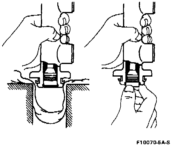 6. Push in the piston and remove the snap ring with snap ring pliers.