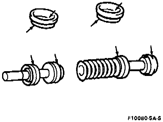 1. Apply clean brake fluid to the rubber parts indicated by arrows.