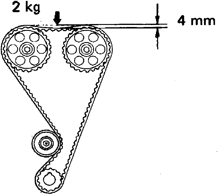 Fig. 19 Measuring belt deflection. 16 valve engine: