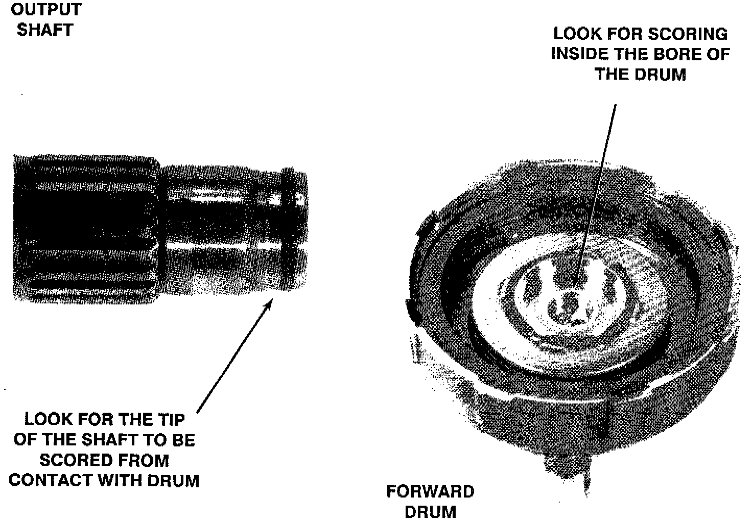 Many Toyota lube failures begin with wear on the front tip of the output shaft and wear in the bore in the rear of the forward drum. The wear is caused by the output shaft contacting the wall of the bore in the rear of the forward drum. Once this occurs, the ring on the shaft can no longer seal, the lube oil leaks away, and failure, due to lack of lube occurs. This is a very common cause of overdrive planet failure in A-140's. The following pages describe a modification to help prevent this situation.