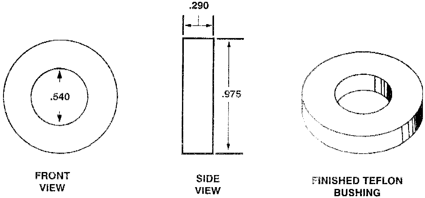The material used for the bushing is listed below. Although there may be other materials suitable for this application, this particular material has been field tested for over 4 years with excellent results. Consult your local plastics supplier/dealer for teflon stock. This material is manufactured by DuPont and is available in 1" diameter extruded rods.