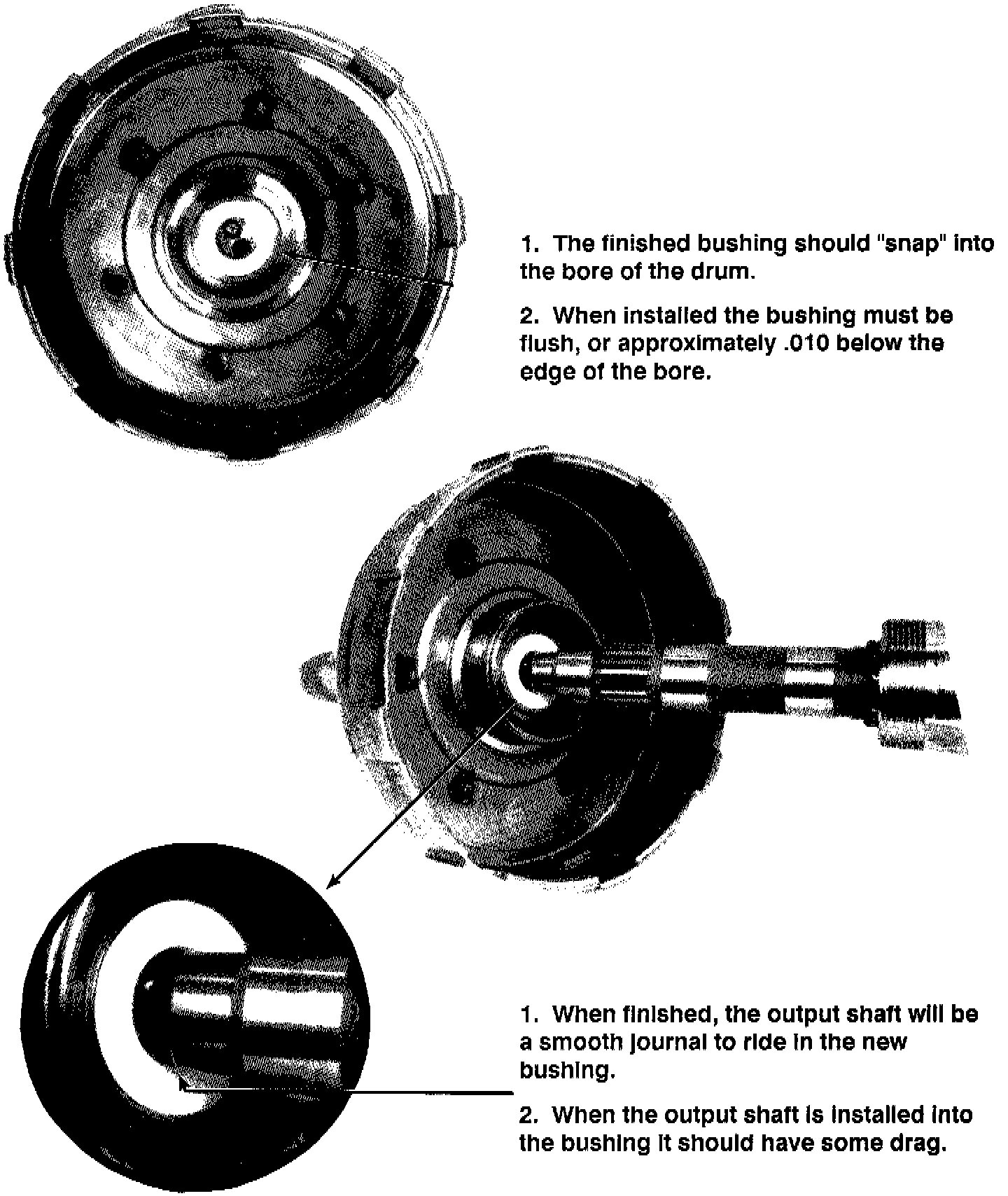 Basically, the modification is to fit a high quality bushing into the rear of the drum and turn down the tip of the output shaft to eliminate the ring groove and allow the output shaft to fit into the fabricated bushing.