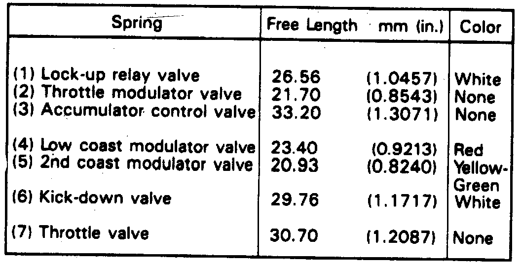 2. Measure free length of springs and replace if less than indicated length, see image.