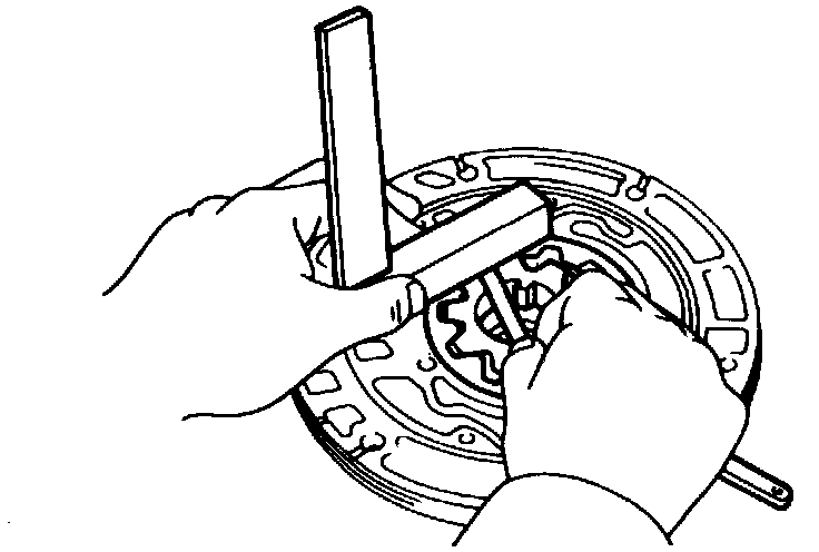 3. Using a suitable straightedge and feeler gauge, check side clearance of both gears as shown in Image. Side clearance should be 0.0043-0.0055 inch.