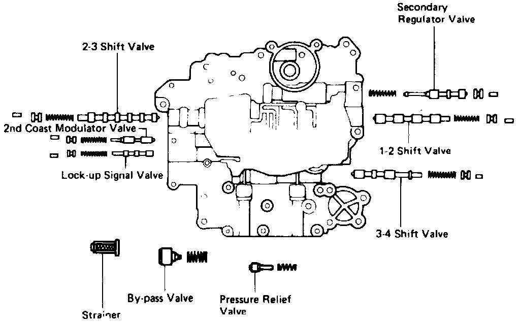 Disassembly1. Remove lower valve body plate and gaskets, then the bypass valve and spring.