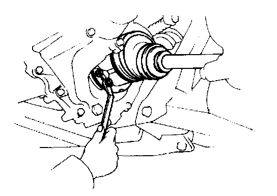 2. While an assistant depresses the brake pedal, loosen six nuts holding drive axle to side gear shaft (differential side).