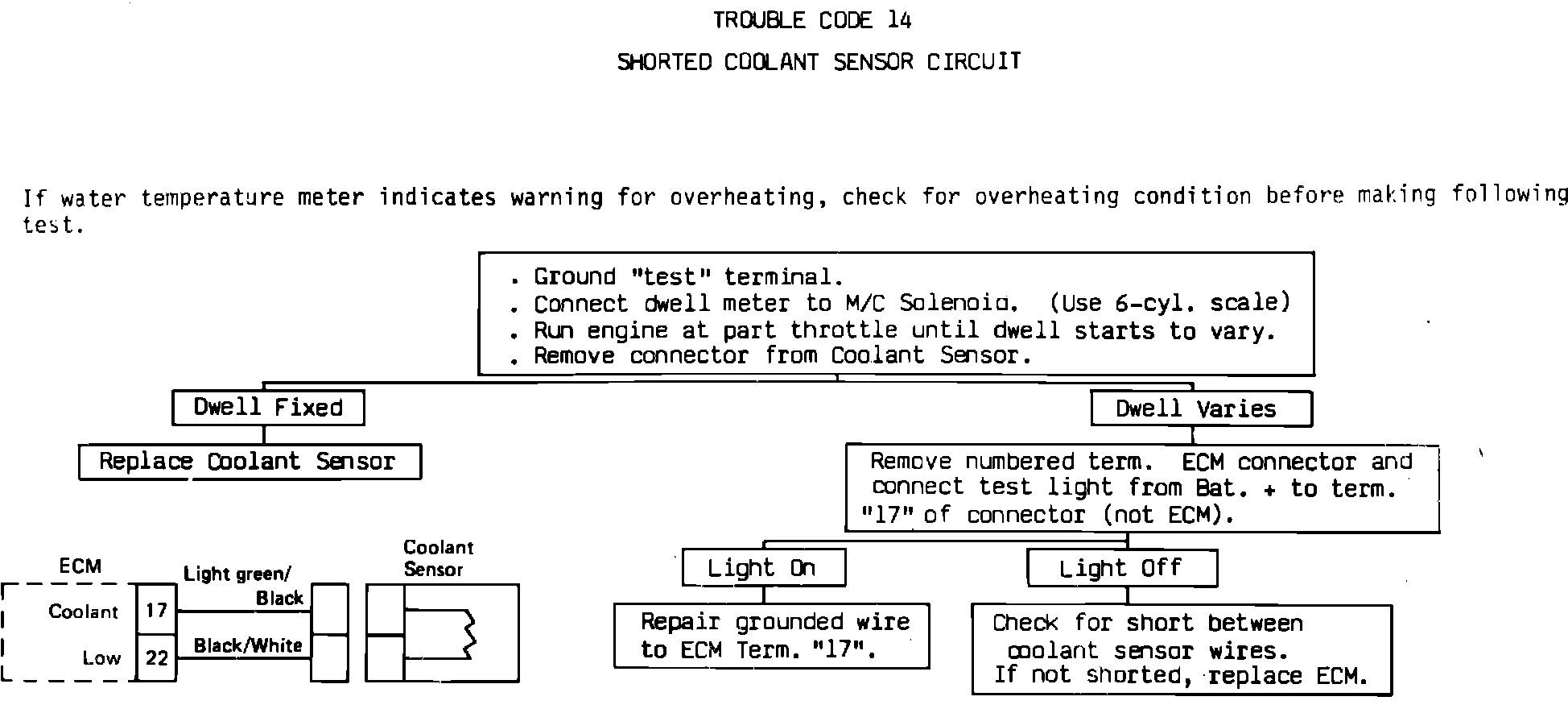 Fig. 18 Code 14, Shorted Coolant Sensor Circuit: