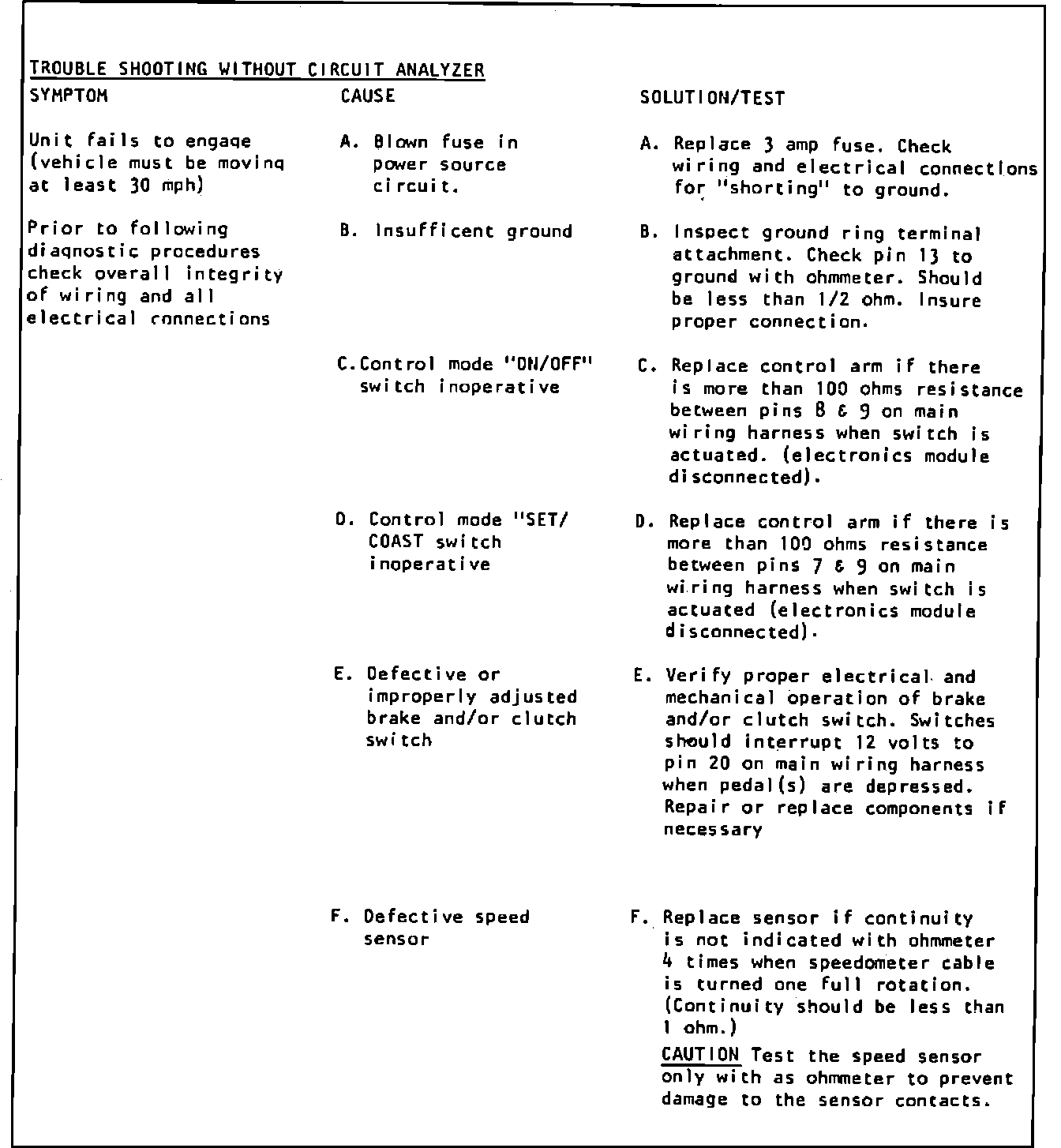 Fig. 2 Cruise Control Wiring Circuit. Manual Transmission: