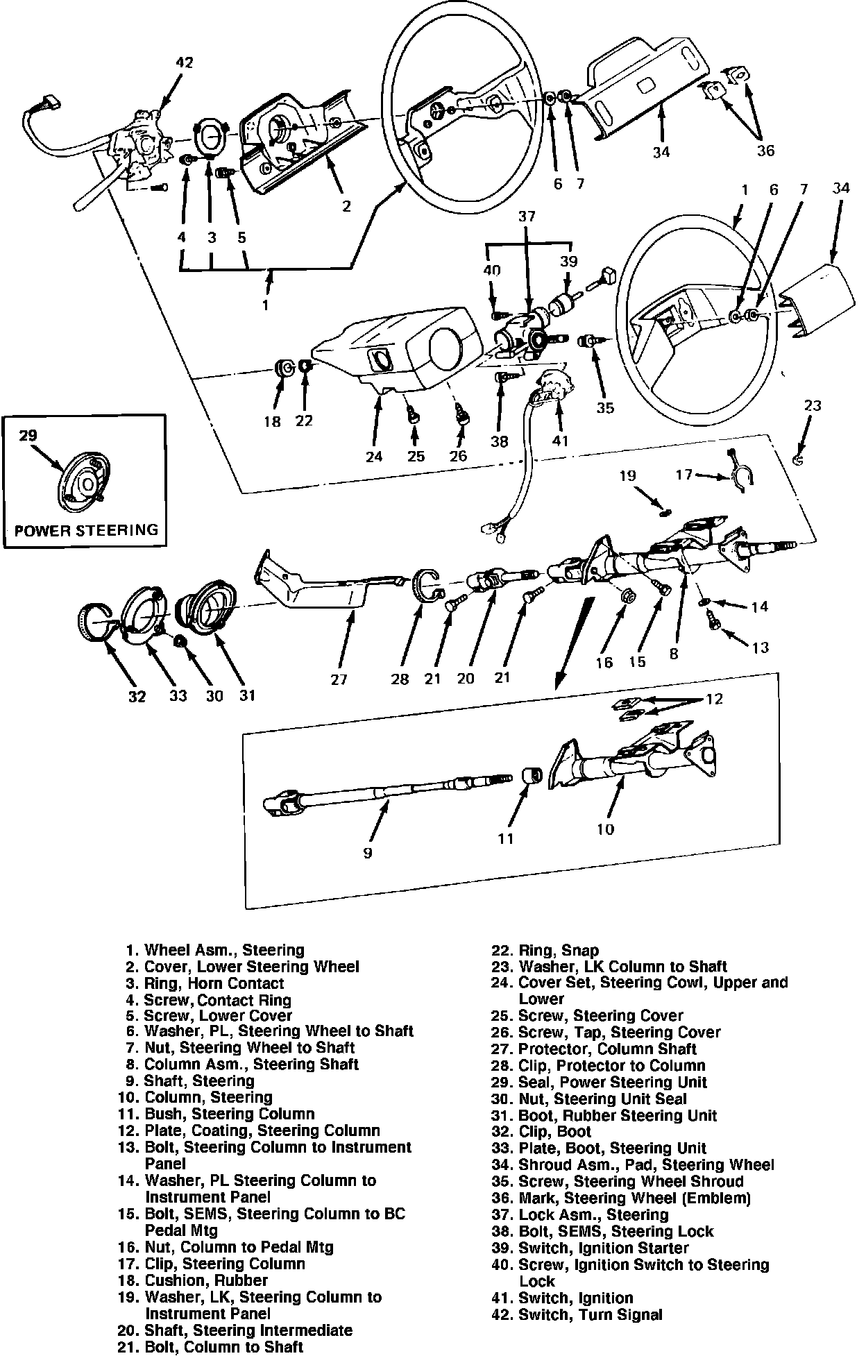 Fig. 1 Steering column exploded view: