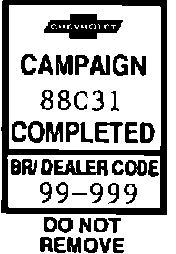 CAMPAIGN IDENTIFICATION LABELEach vehicle corrected in accordance with the instructions outlined in this Product Campaign Bulletin will require a "Campaign Identification Label." Each label provides a space to include the campaign number and the five (5) digit dealer code of the dealer performing the campaign service. This information may be inserted with a typewriter or a ball point pen.