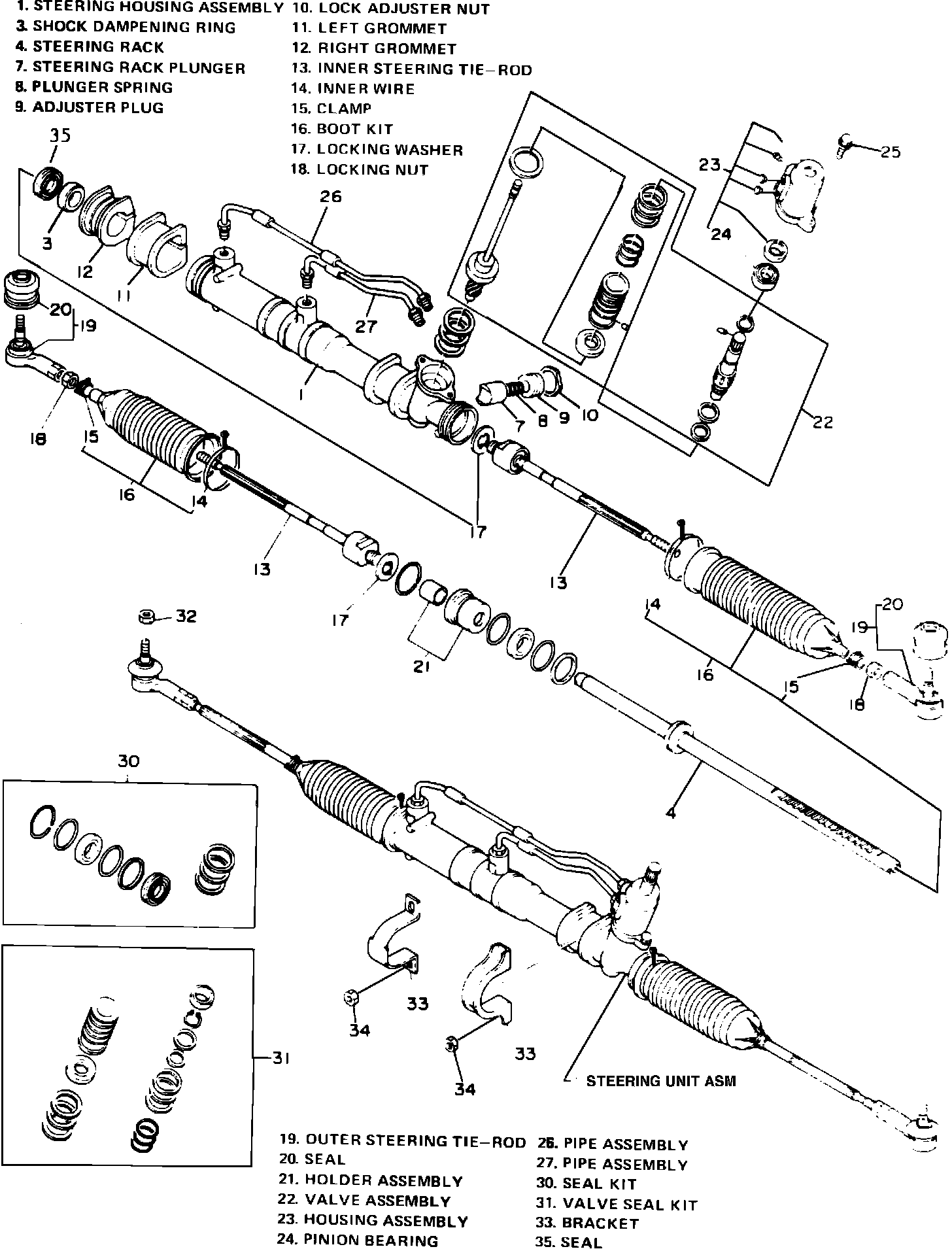 6. Loosen adjusting plug nut, then remove spring and rack bearing.