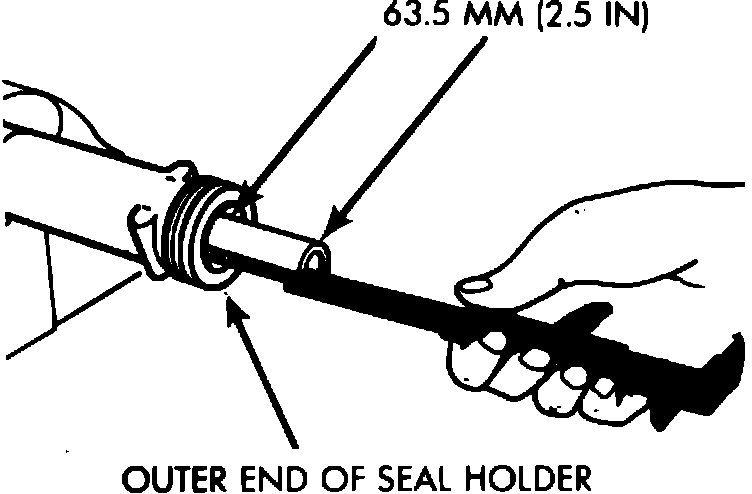 14. Move rack assembly into housing as far as it will go and measure distance between end of holder and tip of rack shaft. The seals are positioned correctly when dimension L is .39 inch (10 mm) or more.