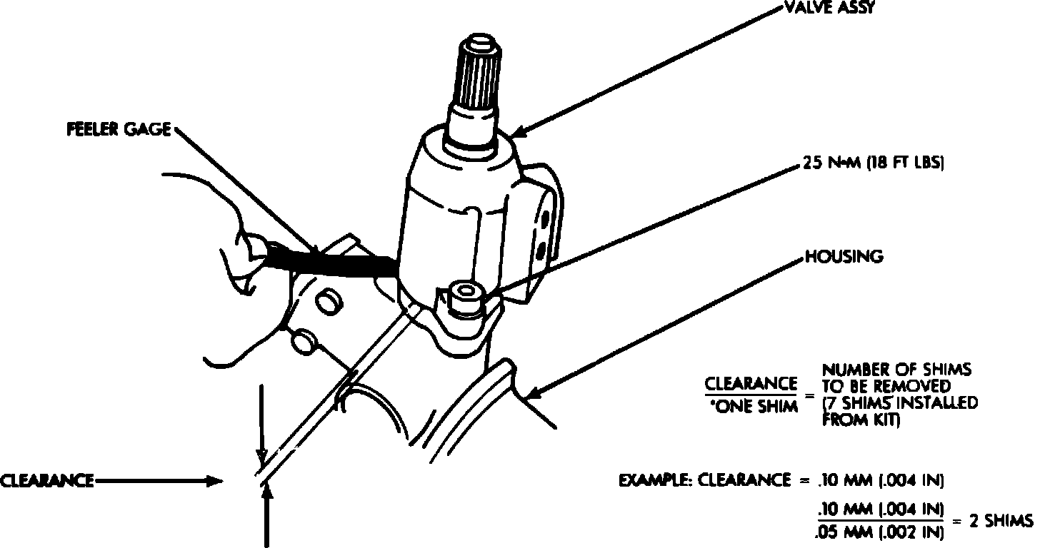 h. When final clearance is obtained, use RTV sealer No. 1052366 or equivalent, to seal mating surfaces of valve and steering housing. Torque to 18 ft. lbs.