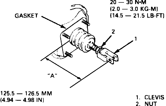 1. Brake pedal should normally be at same height as clutch pedal. Check that distance between brake booster mounting surface (with gasket) and pushrod clevis pin hole is 4.94-4.98 inches, Fig. 9.