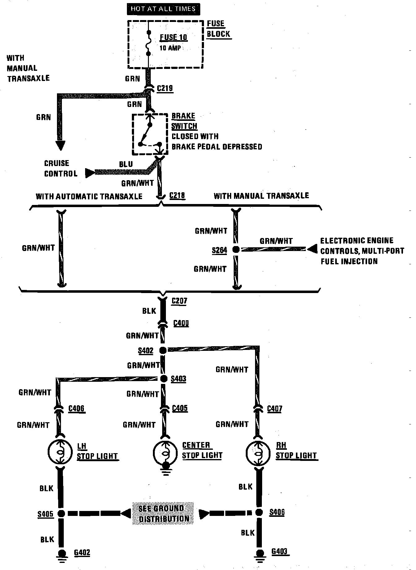 Fig. 43a Stop Lamps Wiring Circuit (W/Cruise):