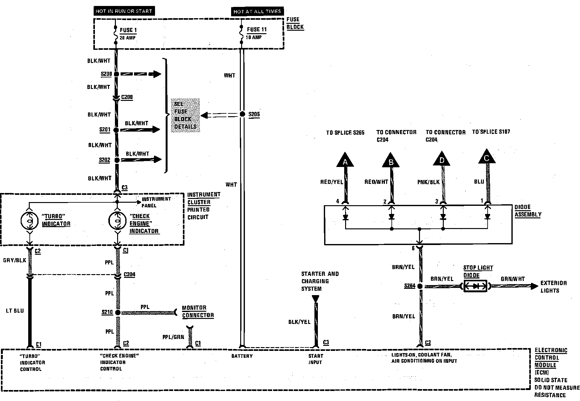 Fig. 36 Multi-Port Fuel Injection Wiring Circuit. Turbo Engine (Electrical Load Input & Engine Turbo Indicator Control):