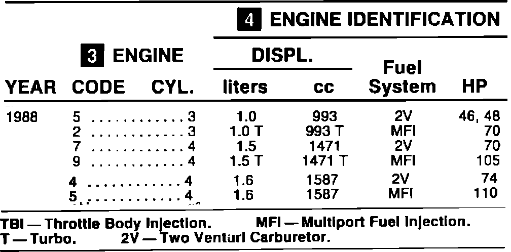 ENGINE IDENTIFICATION: On the line where the engine code appears, read to the right to identify the engine.