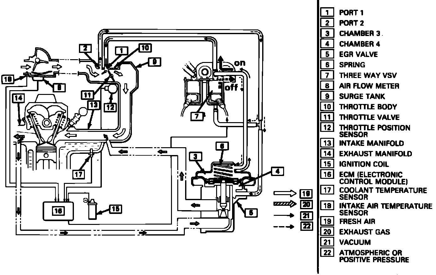 Fig. 11 EGR system schematic. 1985 - 88 models exc. 1987 - 88 models w/EFI & turbocharger: