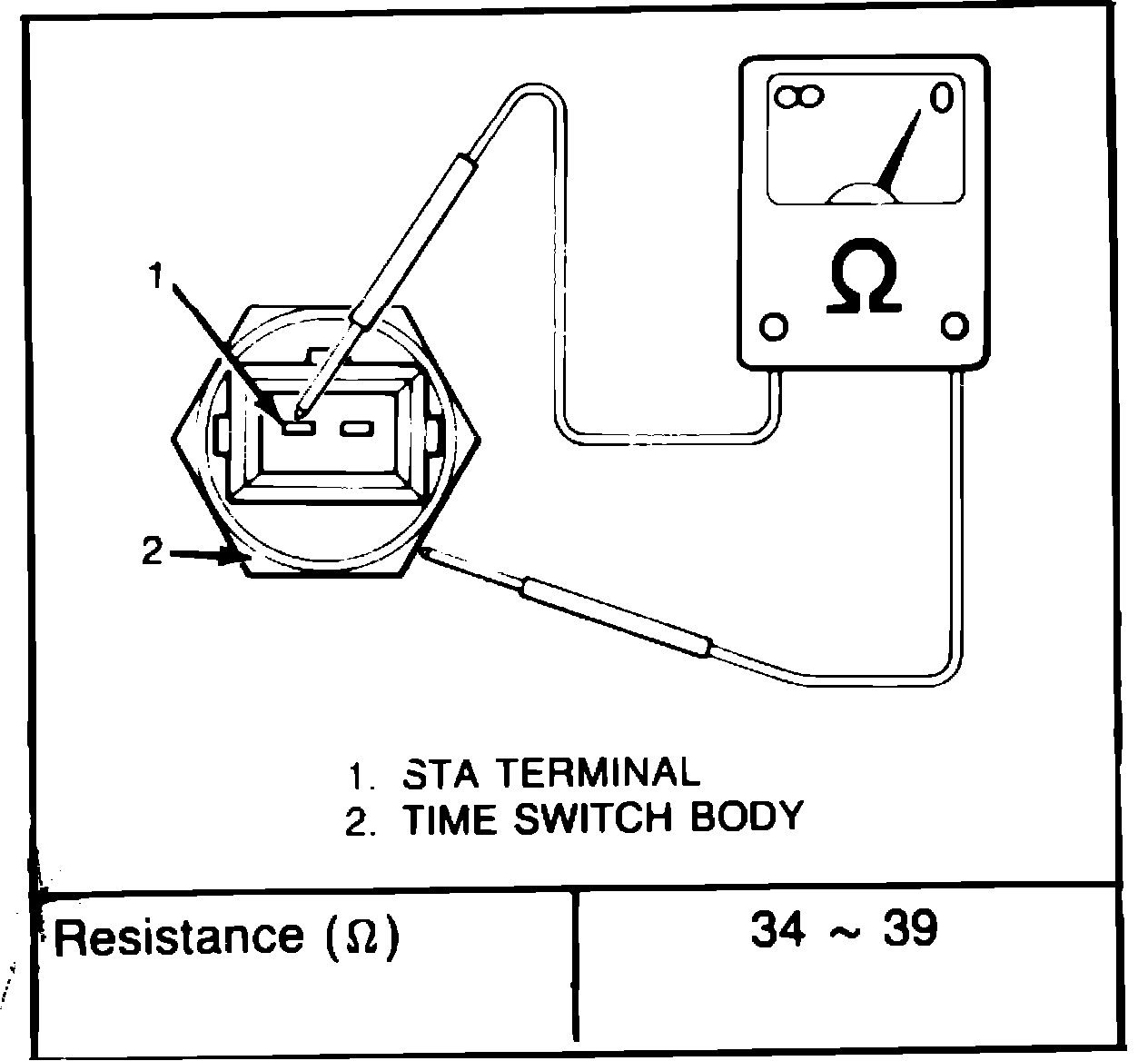 2. Check resistance between starter injector time switch body and STA terminal as shown, Fig. 15.