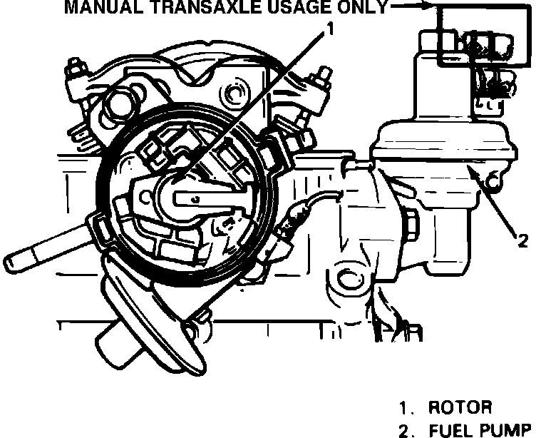 3. Remove distributor cap. Engine is at TDC when distributor rotor is positioned as shown in Fig. 3. If engine is not at TDC, turn crankshaft 360 degrees so timing notch is at 0 mark again.