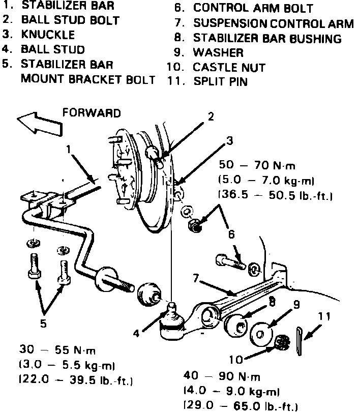 3. Remove stabilizer bar bracket bolts on same side as control arm to be removed.