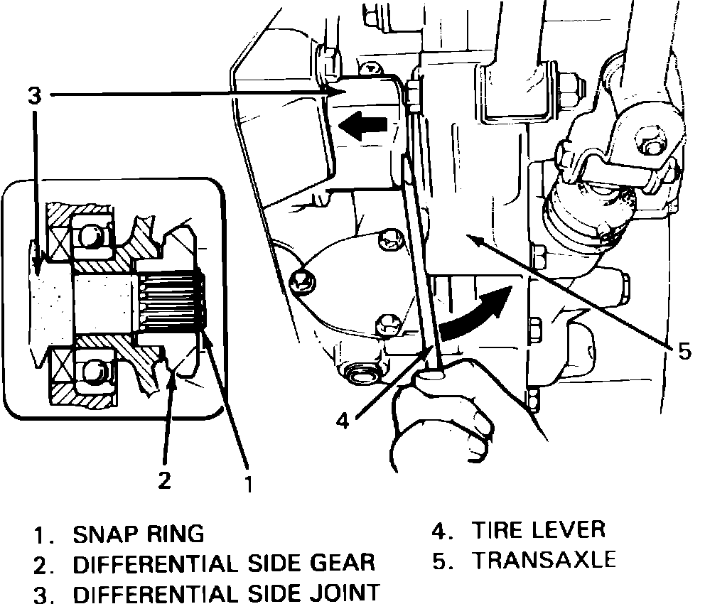 d. After installing inboard joints into differential side gears, push inboard joints into side gears until snap rings on drive axles engage side gears.