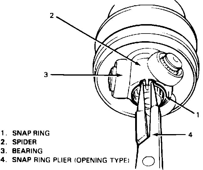 3. Remove snap ring, then spider from shaft.