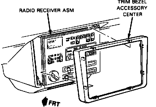 The radio is removed as an assembly with the A/C and heater control head, Figs. 10 and 11.