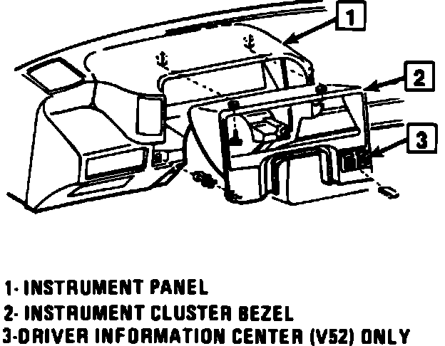 3. Remove 2 screws at cluster lower edge and 2 screws at cluster upper bracket attachment to I/P.