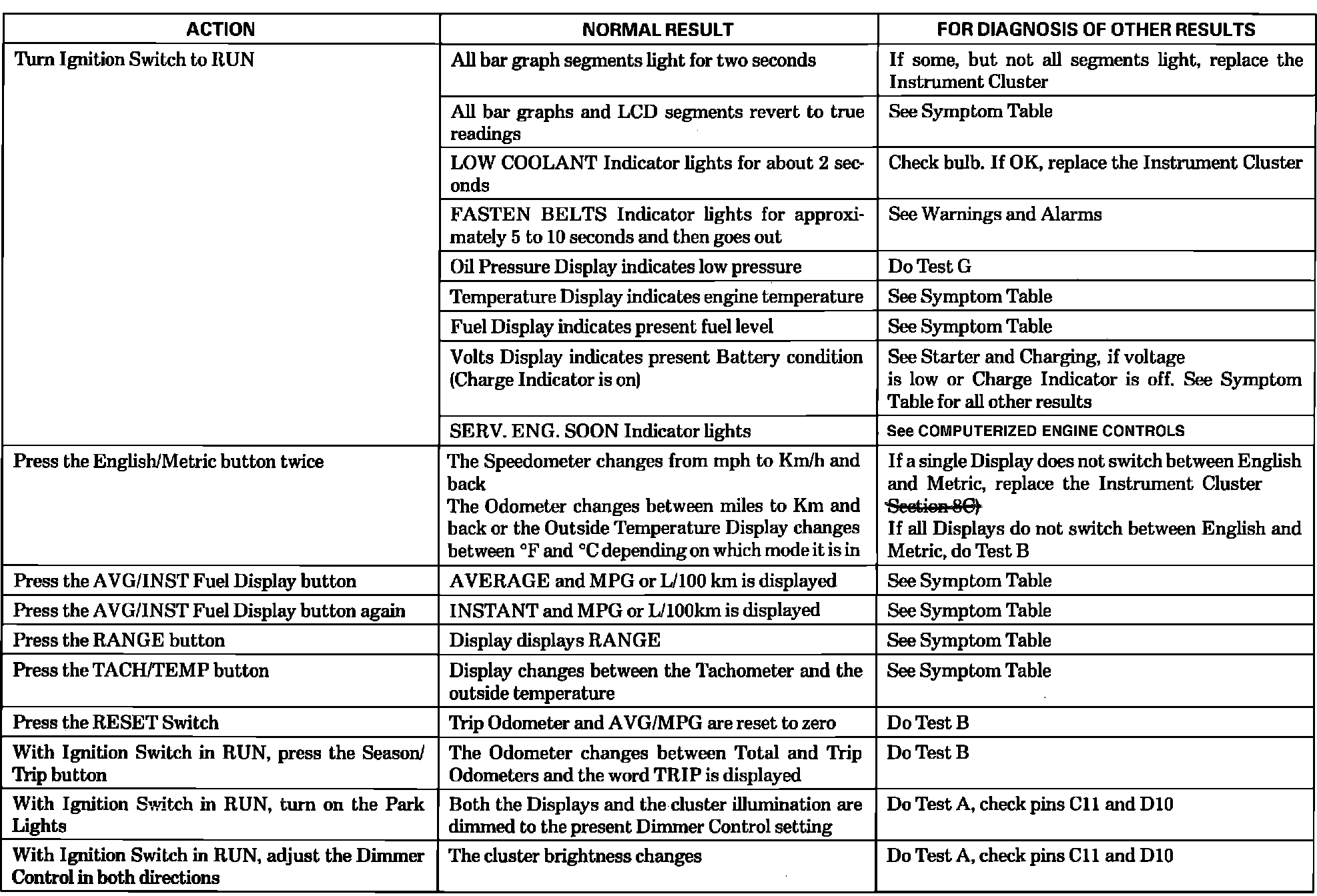The SYSTEM CHECK TABLE is the starting point for diagnosis of the digital instrument cluster.