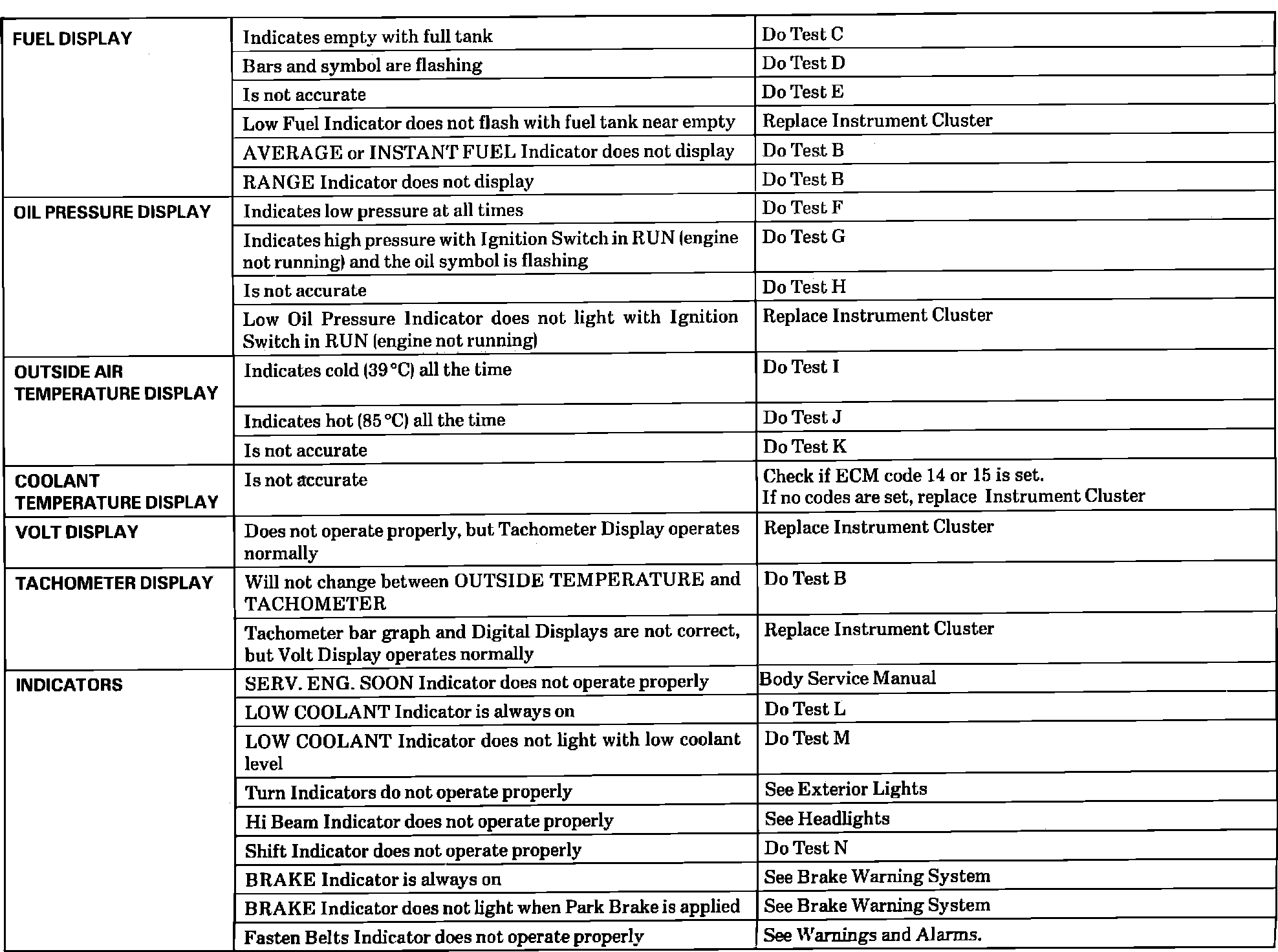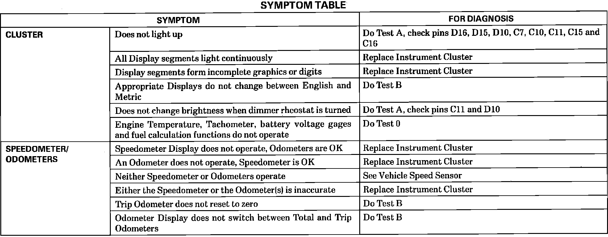Diagnosis By Symptom Table - Part 1 Of 2: