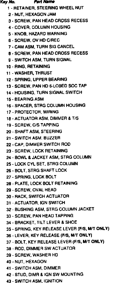9. Steering shaft lock bolt (26) and lock bolt spring (27).